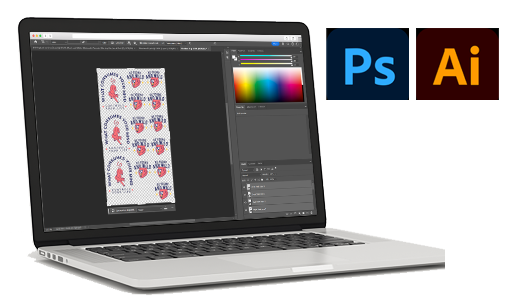 Trykfiler skal leveres i den faktiske størrelse (1:1), som PNG eller PDF med transparent baggrund, og i 300 dpi. Er der hvid baggrund på dit ark, trykkes den hvide farve også.